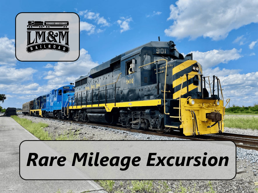 Join us for this Rare Mileage experience on the LM&M Railroad. This trip will operate over parts of the railroad rarely seen by passenger trains.  After departing Lebanon, we will operate south to the end of the line in Mason, then reverse direction and travel to Monroe (Garver Rd). Total trip length will be approximately 4 hrs. Concessions and restrooms will be available on board the train.  This is a unique opportunity to enjoy an extended, relaxing ride through the countryside.